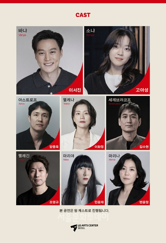LG아트센터는 연극 ‘바냐 삼촌’의 캐스팅 라인업을 공개했다. 이번 공연은 오는 5월 7일부터 31일까지 LG아트센터 서울 LG SIGNATURE 홀에서 관객을 만난다. 이는 ‘벚꽃동산’, ‘헤다 가블러’를 잇는 제작 시리즈의 세 번째 작품으로, 고전 텍스트를 현대적 감각으로 재해석하여 동시대성을 확보해온 기획의 연장선에 놓여 있다.
