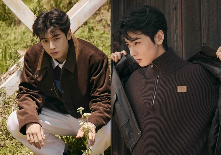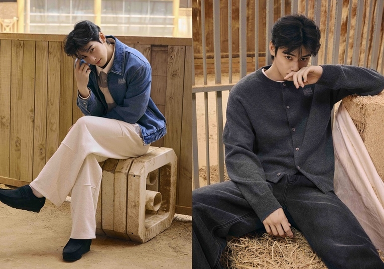 차은우는 데님 블루종과 스웨트 팬츠로 캐주얼한 무드를, 스트라이프 니트와 카고 팬츠에 바시티 재킷을 더한 룩으로는 대담한 믹스 앤 매치를 선보였다. 여기에 흐트러진 헤어와 깊이 있는 눈빛까지 더해져, 차은우 특유의 서정적이면서도 강단 있는 이미지가 화보 전반에 녹아들었다.