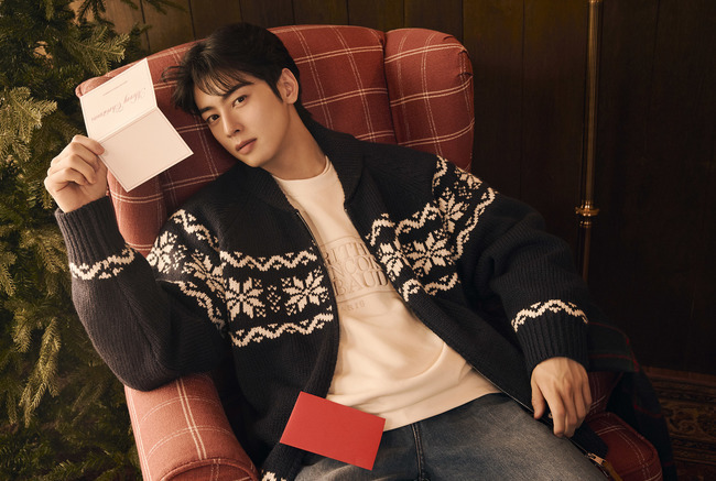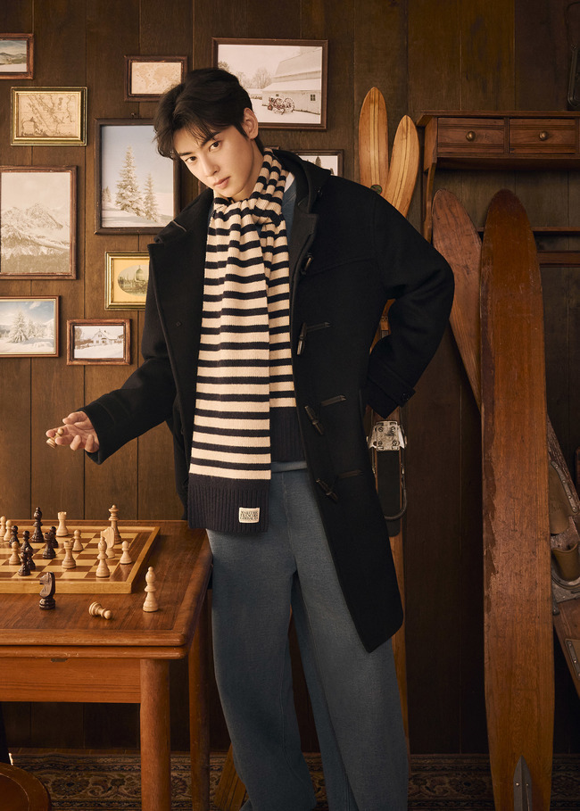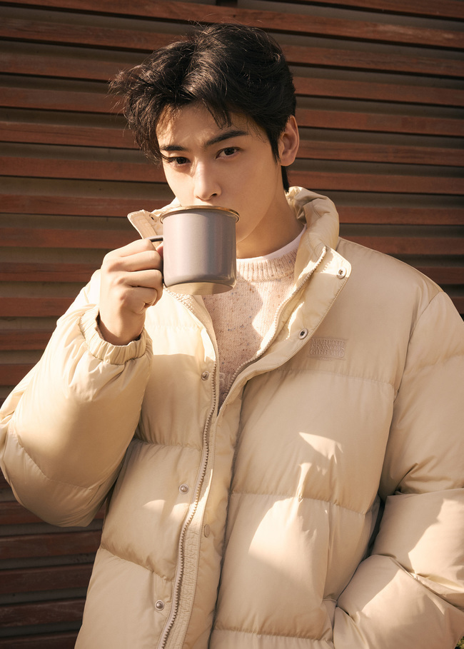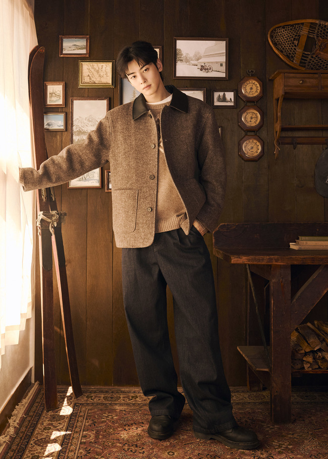 차은우는 절제된 남성미와 부드러운 감성을 동시에 드러냈다. 체스를 두거나 따뜻한 음료를 즐기는 모습으로 여유로운 산장 분위기를 연출하며, 스탠다드 핏 브라운 덕 다운 베스트와 부클 로고 니트를 조합해 클래식한 멋을 선보였다. 또 베이지 컬러의 덕 다운 푸퍼와 레터링 풀오버 니트를 톤온톤으로 매치해 한층 깊이 있는 겨울 감성을 표현했다.