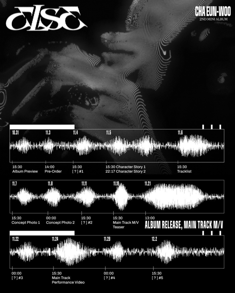 또한 차은우는 앨범의 캐릭터 스토리 두 편을 비롯해 트랙리스트, 콘셉트 포토 2종, 타이틀곡 뮤직비디오 티저 등 다채로운 콘텐츠를 예고했다. 11월 21일에는 전곡 음원과 타이틀곡 뮤직비디오가 동시 공개되며, 24일에는 타이틀곡 퍼포먼스 비디오를 추가로 선보일 예정이다. 음악과 영상, 그리고 서사를 하나로 엮은 입체적 컴백 프로모션이다.