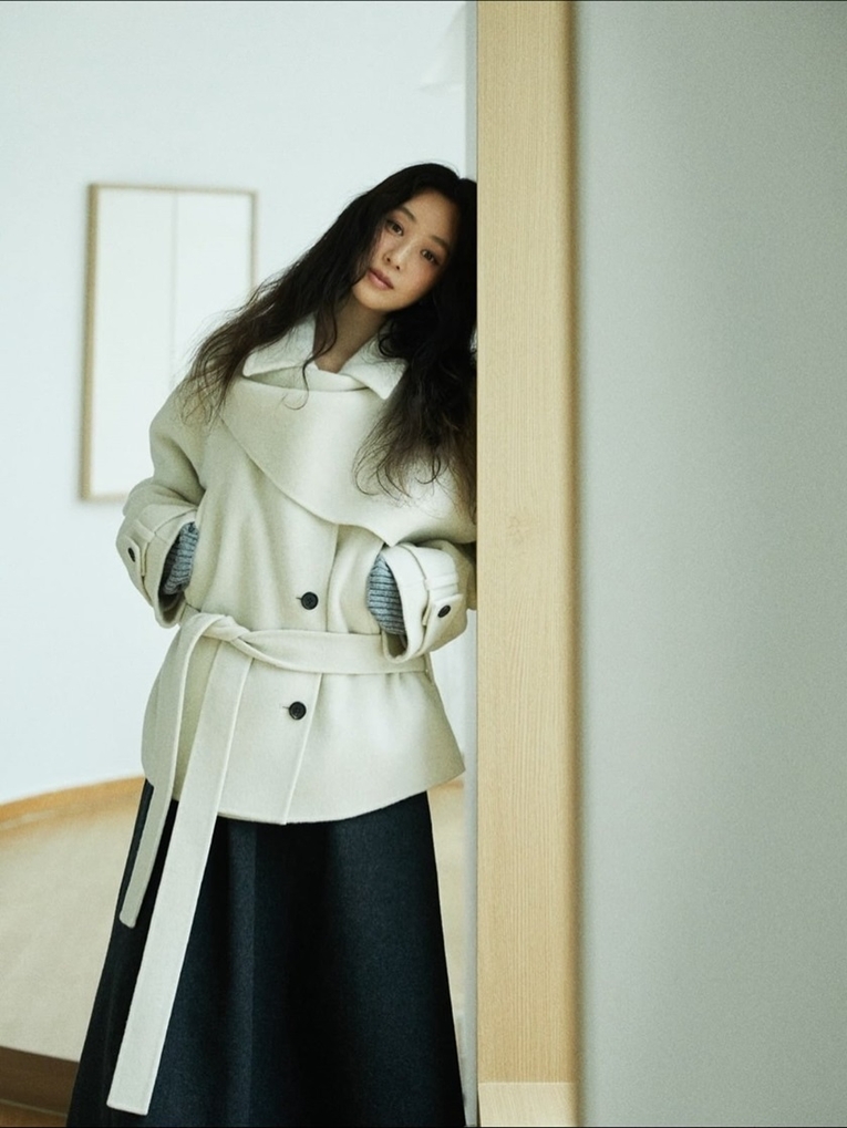 회색 니트 톱과 화이트 팬츠, 베이지 코트로 완성된 룩은 포근하면서도 세련된 분위기를 자아냈다. 한 손을 주머니에 넣은 채 창가에 기대어 있는 모습, 흐트러짐 없이 자연스러운 웨이브 헤어와 투명한 피부는 배우 특유의 담백한 미학을 드러냈다. 꾸미지 않은 듯한 자연스러움 속에서도 디테일이 살아 있는 정려원의 스타일링은 여전히 ‘워너비 패션 아이콘’의 면모를 입증했다.