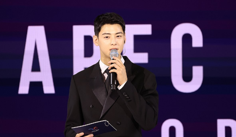 사진 : 영화 퍼스트 라이드 포스터 [㈜쇼박스], 10월 31일 경북 경주시 라한셀렉트호텔에서 열린 2025 아시아태평양경제협력체(APEC) 정상회의 환영 만찬에서 사회를 보는 차은우 [연합뉴스]