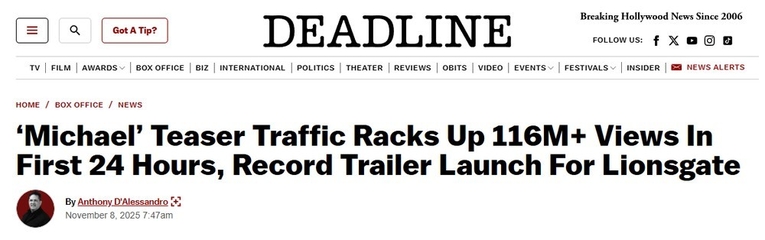 팝의 황제 마이클 잭슨의 생애를 스크린으로 옮긴 영화 ‘마이클’이 티저 예고편 공개 단 하루 만에 글로벌 신기록을 세우며 전 세계를 다시 한 번 뒤흔들었다.