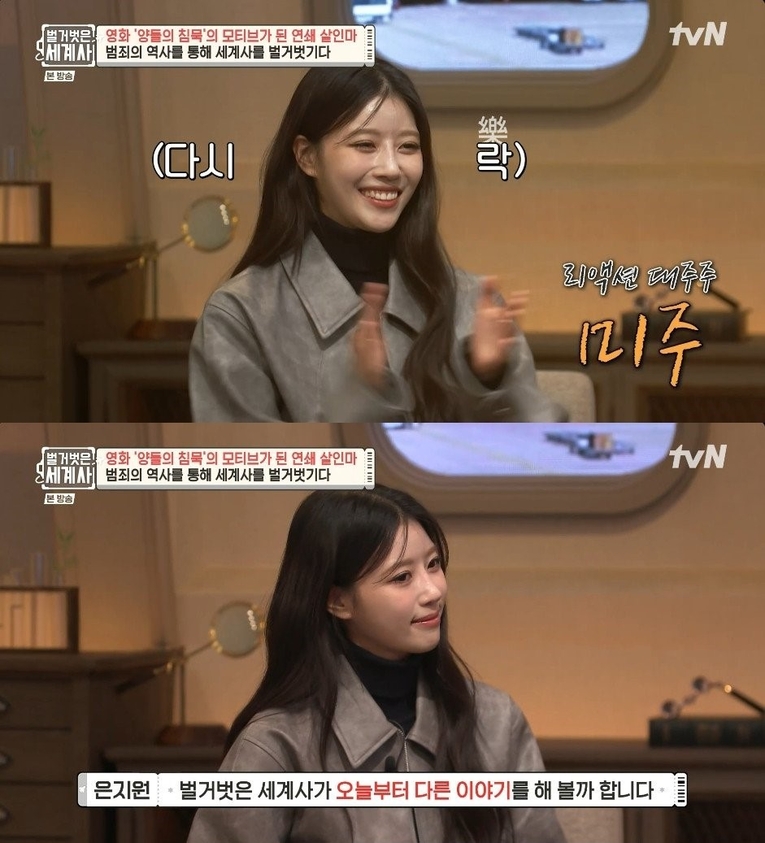 이미주는 지난 23일 방송된 tvN '벌거벗은 세계사'에 고정 MC로 첫 출연했다. 등장과 동시에 “여러분과 영원히 함께할 미주입니다. 막둥이에요!”라고 당차게 인사를 건네며 스튜디오 분위기를 단숨에 끌어올렸다. 기존 출연진과도 자연스럽게 호흡을 맞추며 빠르게 프로그램에 스며드는 모습이었다.