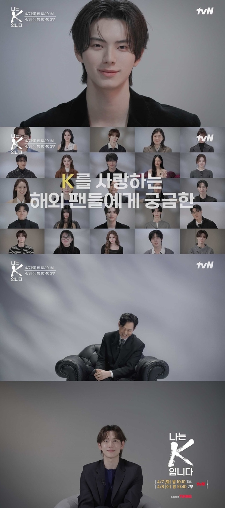‘나는 K입니다’는 총 2부작으로 구성된다. 1부 ‘Why do you love K?’에서는 국내 인사들이 인터뷰어로 나서 전 세계 팬들에게 K콘텐츠를 사랑하는 이유를 묻고, 2부 ‘What is K?’에서는 팬들이 질문을 던지고 국내 창작자들이 답하는 방식으로 진행된다. 질문과 답의 방향을 바꾸는 구조를 통해, K콘텐츠를 바라보는 시선의 균형을 맞추겠다는 의도가 엿보인다.